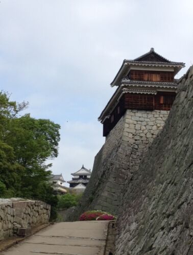 松山城 「坂の上の雲」で有名な松山城です。この松山城の遠景に見えるこの坂の上の雲を 司馬遼太郎さんは 本の題名にされたそうです。百名城として 松山城が良い所は、ロープウェイか リフトで 登城するのが 素敵だなあっと思います。城の縄張りも広く 城か…